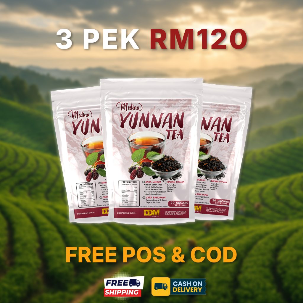 Yunnan Tea gabungkan 3 herba terbaik dunia: Pu’erh, Oolong & Mulberry.