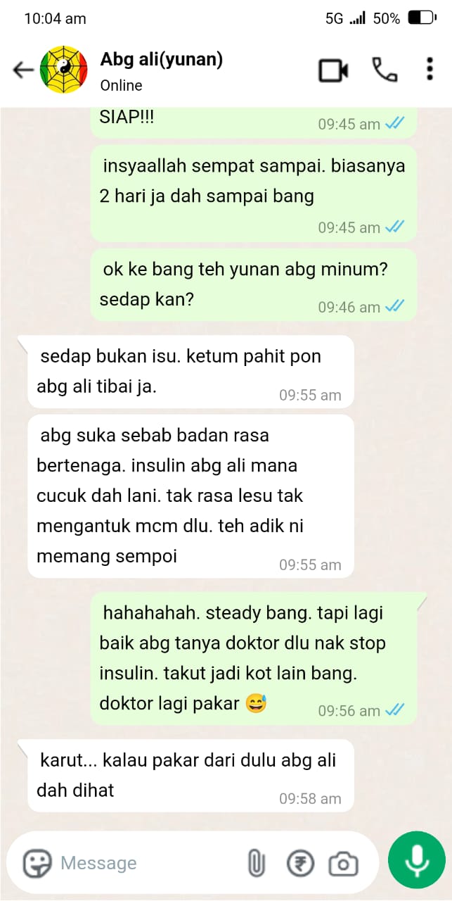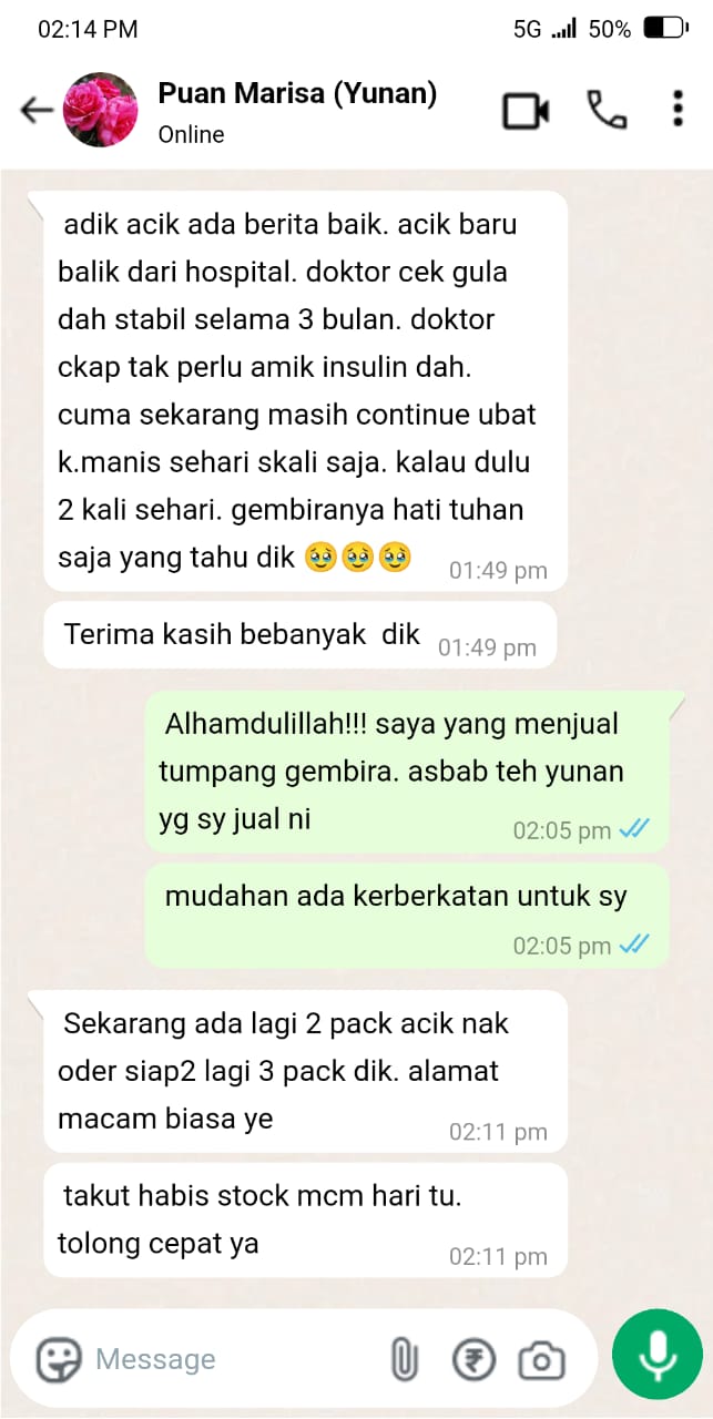 Ratusan pengguna seluruh Malaysia dah alami perubahan positif selepas amalkan Yunnan Tea setiap hari.